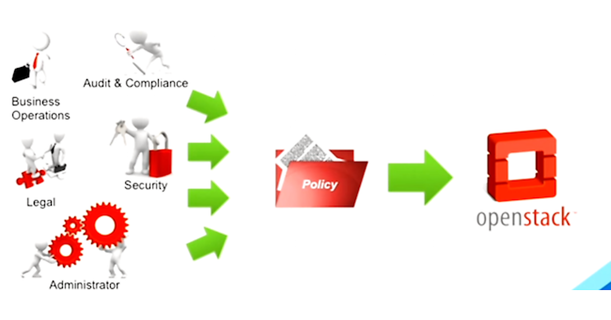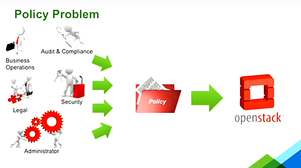 企業内や業務で使うためのシステムでは、さまざまなPolicyがあります。Policyというのは、別の言い方をすればルール、決め事、のような意味です。例えばよくあるのはセキュリティや、コンプライアンスのためのPolicyです。「インターネットに接続している仮想マシンが80ポートで通信してはいけない」であるとか、「DOSアタックを検出したらネットワークを隔離する」とか、「脆弱性のあるソフトウェアがインストールされているVMはネットワークから遮断する」というようなものです。