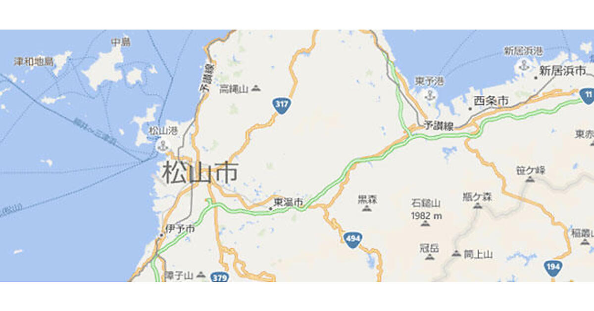 図13で[3D表示]をクリックすると、松山市の道後近辺が3D表示に変わります(図14)。