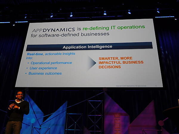 12月1日のオープニングキーノートではAppDynamicsのフィールドオペレーションつまりセールスのトップ、ジョー・セクストン氏がMCとして登場。まずはAppDynamicsが最近注力しているアプリケーションインテリジェンスの必要性やアプリケーションモニタリングの概要などを紹介した。