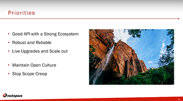 このようにOpenStackの中で最も重要なNovaですが、現在のNova PTLであるJohn Garbutt氏は、「Novaプロジェクトの重要なミッションは、Novaのスコープを拡張しすぎないことだ」と言います※2。スコープの拡張は、Novaからのスピンアウトで行えばよく、Novaとしてはより堅牢で安定した基盤としてOpenStackを支えるのだ、という意思が感じられます。そのため、Novaに対する機能追加が多く提案されていますが、スコープ拡張につながるものは受け入れられにくい状況になっています。Novaのデザインサミットでも、新機能よりは既存課題の解消方法、既存機能の改善方針などについての議論が多くなされました。