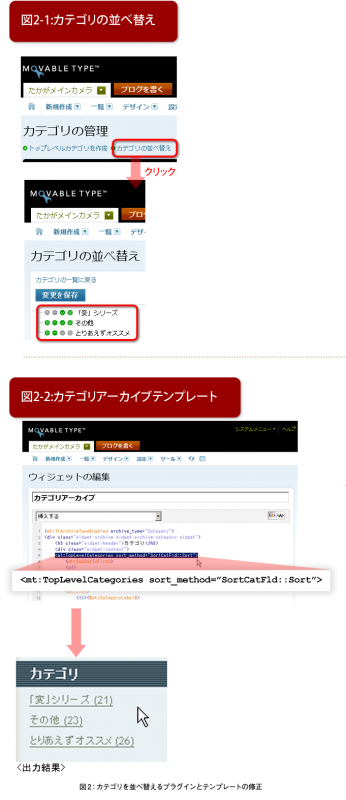 そこで、本来は完全自動のカテゴリの並び替えを自分で制御する方法としてプラグインやMTタグを利用する方法など、たくさん考えられてきました。