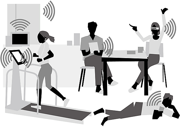マンション内の高速Wi-Fiネットワークには、タブレットやスマートフォンだけでなく、テレビ、エアコン、冷蔵庫、ロボット調理レンジ、ロボット掃除機、個人認証ドアフォン、ホームサーバーなど、さまざまなものが繋がっている。ミドルウェアと呼ばれる制御用プログラム基盤や通信プロトコルの共通化が始まっているため、異なるメーカー間でも、スマート家電による家電ネットワークを構築して、有機的に連携できるようになった。たとえば、ロボット調理レンジが冷蔵庫と連携して、冷蔵庫内の食材でできる料理を提案する。エアコンはロボット掃除機と連携して、掃除中は自動的に空気清浄モードで動作したりする。