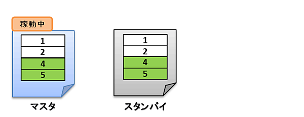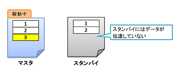 このとき、マスタとスタンバイは同じデータ内容になっています。