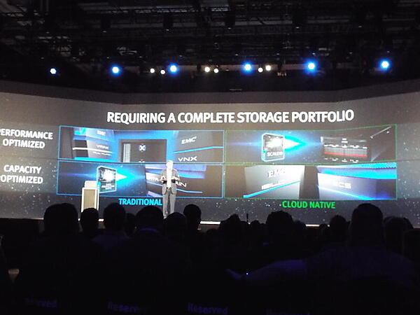 ちなみに上の写真にある「Requiring A Complete Storage Portfolio」の前のスライドには「Businesses will have a Wide Variety of Workload with two distinct Architectural Paradigms」が来るので「エンタープライズには様々なワークロードがあり、それをスケールアップ型のアーキテクチャーとスケールアウト型のアーキテクチャーでカバーする完全なストレージ製品のポートフォリオが必要だ」という意味であり、まさにEMCが今回のイベントで整理したかったことと言って良いだろう。