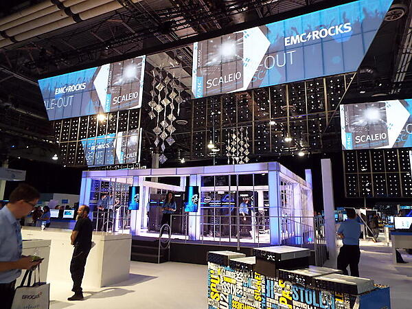 パートナーが展示を行うブースもオープンとなり、如何にもアメリカらしい派手な造りのEMCブースである。RSAやPivotalもブースを構えていた。