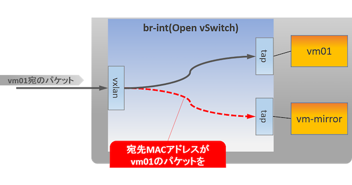 今回は2台のインスタンス(vm01、vm-mirror)を使って、パケットのミラーリングをRESTCONF APIから行ってみます。インスタンスvm01宛のパケットをインスタンスvm-mirrorにミラーリングするためフローの設定をします。