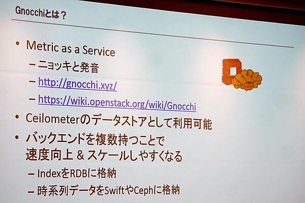 「テコラスでは各種リソースの使用状況を確認するためにCeilometerを使っています。データストアにMongoDBを利用してるんですが、このダンプがどんどん肥大化していき、ディスクが溢れるまでになりました。いろいろ解決策を試しましたが、最終的にはデータストアをMongoDBからgnocchi(ニョッキ)に変更するのがよさそうかなと思っています。Mitakaにアップグレードした後に今後検証する予定です。」