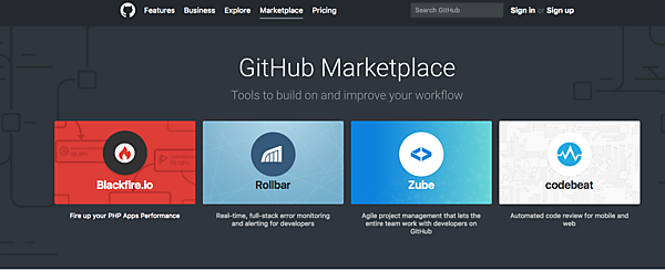 これは従来Integrations Directoryと言っていたものをさらに拡張したもので、個人または企業ユーザーが自由に3rdパーティーのアプリケーションを購入してインストールできるようにしたものです。現状はTravisCIやCircleCI、ZenHubやWaffleなどが並んでいます。もちろん従来のように各社Freeプランも用意しています。