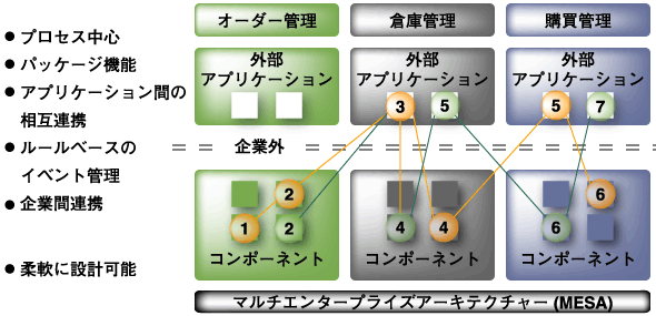従来のSCM 1.0は、チェーンで繋がれたすべてのシステムに対して、単独のアーキテクチャを押しつけるようなものだった。このため、企業間におけるチェーンの構築にコストと時間がかかり、現実のシステムとSCMが目指す理想との間には大きな隔たりがあった。 この一定のアーキテクチャに従ったチェーンの構築が行われるSCM 1.0では、ビジネスプロセス自体もシステム上で用意されたものを利用することとなる。自社のビジネスプロセスを実現するためには、膨大な開発コストをかけて独自プログラムを開発するしか手段がなかったのである。 しかし独自プログラム開発には別の問題も存在する。巨費を投じて開発したビジネスプロセスのプログラムは、開発時点での自社ビジネスをあらわしているため、ビジネス環境が変化した場合に整合性が取れなくなるケースが多々ある。 ビジネスプロセスの変化に合わせるためには改編のコストが必要となるため、さらなる投資を嫌った場合には結局人手でSCMをカバーをするといった悪循環が生まれる。最終的には、ビジネスのバックオフィスともいえる物流や在庫管理などは効率化と逆の方向へと進むことになるといったケースが多く見られた。 これらを反省点として、各企業は今、「SOA(サービス志向アーキテクチャ)」をベースにしたSCM 2.0に注目しているのである。 |