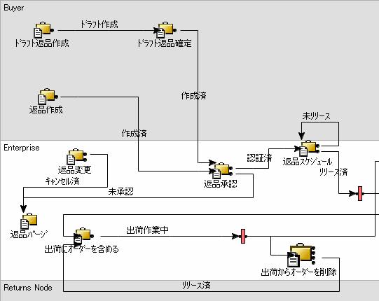 Yantraの大きな特徴は、ユーザ自身の手によりビジネスプロセスの記述ができることだ。一般的な業務アプリケーションの場合、プロセスを追加する際、プログラミングが必要なことが多い。しかしYantraビジネスプロセスプラットフォームでは用意されたプロセスモデリングツールを利用して、用意されたイベントをパイプラインでつないでいくことで新たなビジネスプロセスを容易に完成させることができる。 このようなプロセスモデリングツールは、システムを設計時によく利用されるが、多くの場合プロセスを図化したものが多く、実際にはイベントや処理の内容についてプログラミングを要することがあった。 Yantraでは業種によって必要とされる標準的なイベントや処理のプログラムモジュールがあらかじめ用意されている。これはスターリングコマースが有する膨大な事例を元にして作られたものだという。独自システムとの連携なども必要になる時は、その部分だけをプログラミングすればよいのだ。 このようなプロセスモデリングツールがあることで、大掛かりなシステム開発を必要とせず、ビジネスプロセスの記述により、ビジネスの変化に対応していける。例えば、販売チャネルの多様化ということ1つ取っても、直営店、フランチャイズ、インターネット、メールオーダー、電話でのオーダーといったマルチチャンネルを統合化することができる。 それもここでは単に統合するだけでなく、エンドユーザのリクエストに応じてインターネットのWebサイト上でオーダーを受注し、決済はクレジットカードで行い、商品の受け取りは指定した店舗でといった、今までのチャネルごとに分断されたSCMでは実現不可能なことも短期間でビジネスプロセスを記述して作り上げることができるのだ。 |