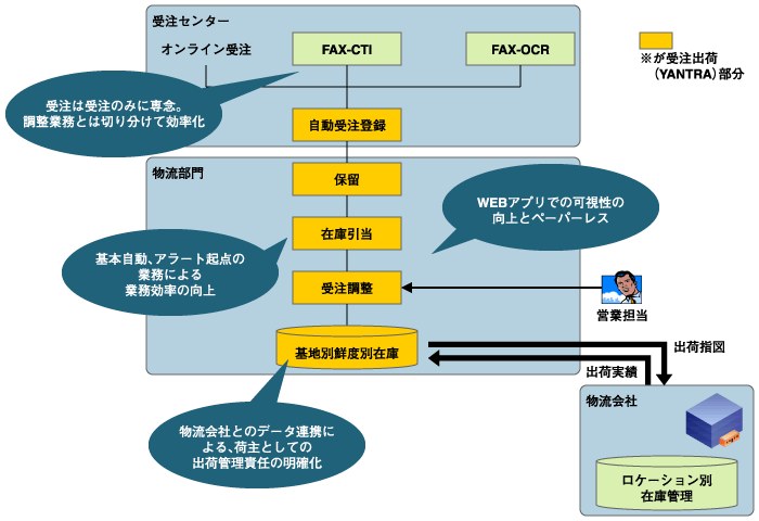 味の素では選択した理由について、「Yantra DOMは受注処理から出荷処理に至る各機能が部品化されており、共通機能と個別機能も分類できるため、複数企業での利用が可能だった」とし、「既にはじめていたグループ会社との共同利用を続け、高い投資対効果をあげていきたいと考えていた当社にとって重要なポイントだった」という。