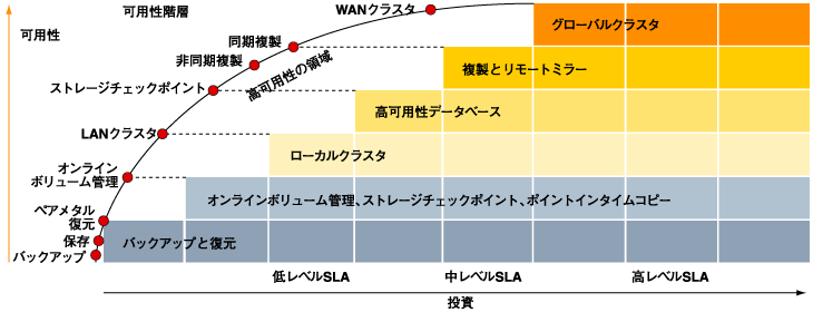 図1に、可用性の要件および各層または複数の要件を満たすためのシマンテックのソリューションを示します。