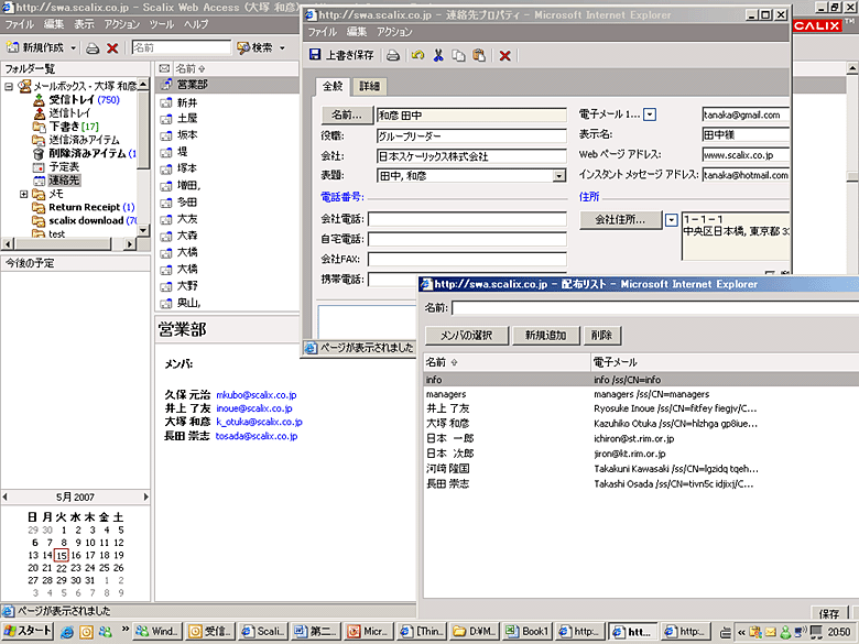 個人アドレス帳(連絡先)は、プロファイル情報、配布リストなどが登録できるほか、配布リストはScalixの宛先だけでなく、外部アドレス、グループアドレス、配布リストなど混在できます。 |