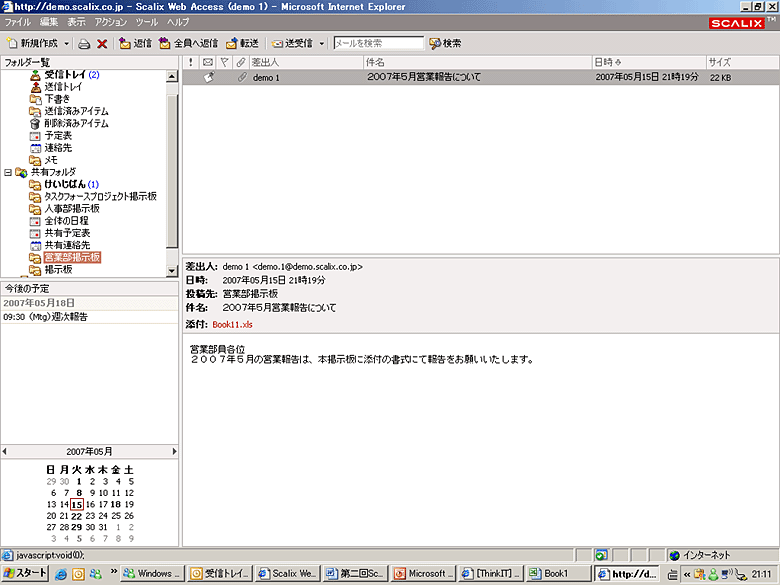 それではScalix Web Accessにはどのような機能や操作ができるのか、画面をもとにいくつか紹介していきます。 |