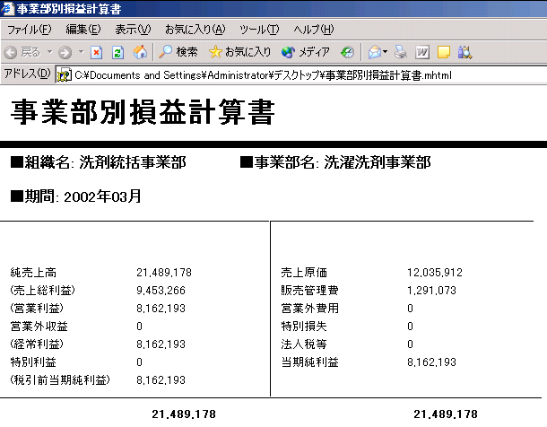 レポーティング・ツールのユーザ層は数が多いだけに、検索したデータを2次的に加工したいとか、きれいに印刷したいといった付加的なニーズが発生します。これをレポーティング・ツールそのもので解決しようとすると、本質的な機能が軽視される、導入コストが増大するといったことにつながり、BIツール選択の失敗につながりかねません。 したがって、レポーティング・ツールが持つ多様な形式のファイル出力機能を評価し、付加的なニーズはユーザ独自の解決に任せるというのが、現実的な解決策といえます。 レポーティング・ツールから出力可能なファイル形式の種類は製品によって様々ですが、一般的に見て必要性の高い出力形式を順に見ると、PDF、Excel、HTMLの3種類になります。 PDF出力機能があると、レポーティング・ツールで表示されたレポートをプリンタできれいに印刷したいというニーズに対応できます。図2、図3にMicrosoft Reporting Servicesを使用した場合の例を示します。図2がブラウザ上に表示されたオリジナルのレポートで、図3がPDF出力されたファイルを表示したものです。 Excel出力機能があると、レポーティング・ツールで検索したデータを2次的に加工したいというニーズに対応できます。図2のオリジナル・レポートをExcelファイルに出力したものを図4に示します。 HTML出力機能は、レポーティング・ツールで表示されたレポートを簡単にメールに添付して送りたいというニーズに対応できます。図2のオリジナル・レポートをHTMLファイルに出力したものを図5に示します。 レポーティング・ツールの中には、先ほど解説したバッチ・レポーティング機能でこれらのファイル出力を実行できるものもあります。これら2つの機能を組み合わせて使用すれば、さらに色々なレポート作成の方法をとることができます。例えば、バッチ・レポーティングでファイル出力を行い、そのファイルの出力先ディレクトリを企業内ホームページからリンクしておけば、ホームページのコンテンツとしてレポートを公開して、その更新も自動化することができます。 |