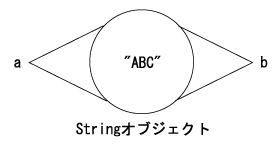 まず、05行目の「a = a + 100 + 200」では、+演算子による文字列の連結が左から実行されるので、a + 300と解釈されないことに注意してください。 03行目から06行目までのStringオブジェクトa、bの参照については次の図のようになります。 |