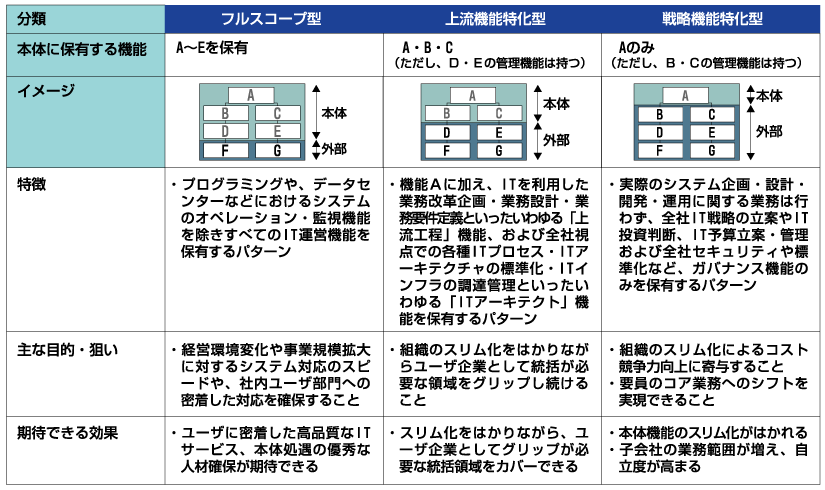 | ユーザ企業本体に持つIT運営機能の範囲 | ||||||||||||