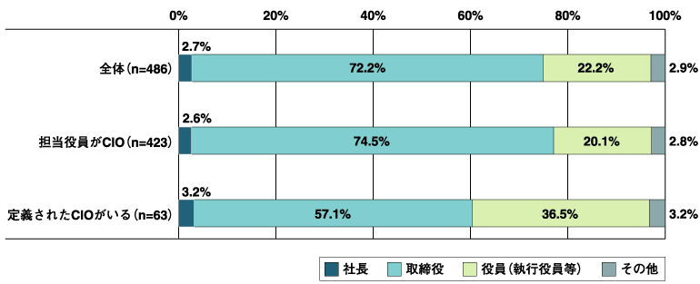 「定義されたCIOがいる」場合は、「役員(執行役員)」の割合が高くなっている。