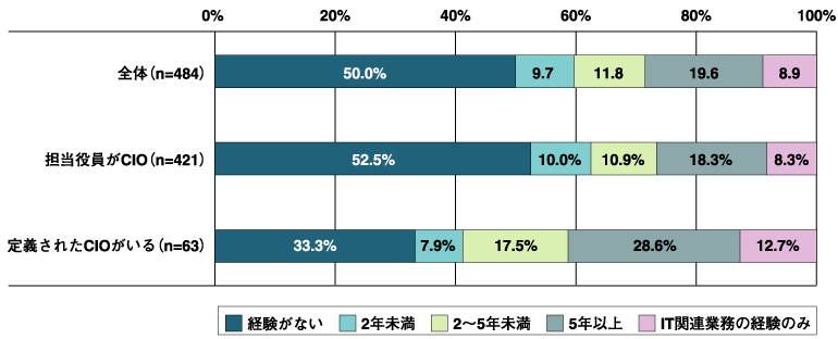 図7:CIOのIT関連業務の経験 (画像をクリックすると別ウィンドウに拡大図を表示します)