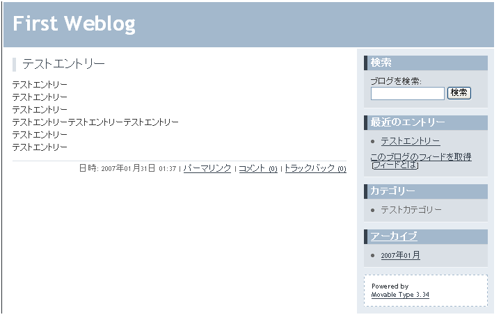 Movable Typeをインストールすると、「First Weblog」という初期状態のブログが設置されます。 このFirst Weblogを基にデザインをカスタマイズしてWebサイトを作成します。そのためにはWebデザインやMovable Typeの高度なスキルが必要です。そのような理由から、通常Movable Typeによって企業サイトの作成を行う際は、Webサイト制作会社に作成を委託する場合が多いのですが、その場合コストがかかってしまいます。 このコストを削減する「デザインテンプレート」を用います。デザインテンプレートとは、Webサイトのデザインをテンプレート(雛形)にしたもので、テンプレートにそってWebサイトを作成することで、簡単に高品質なデザインを取り入れることができます。 |