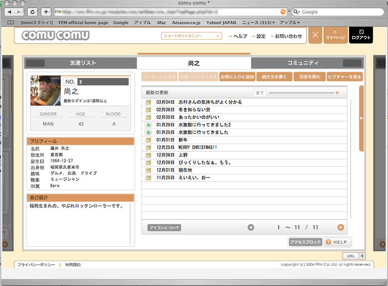 なお、解説するにあたっては、実際にWillbeeを使って構築された「FFM」を取り上げる。FFMでは、藤井フミヤと藤井尚之の両者のファンサイトをSNS(Willbee)で運営している。