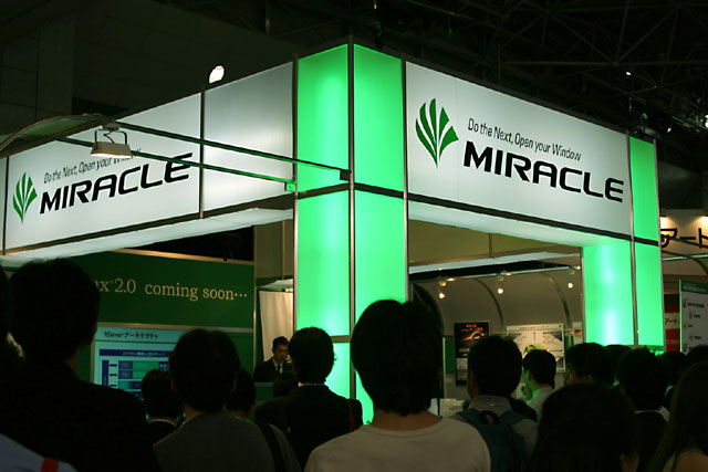 ミラクル・リナックスではやはり近日リリースされる予定のAsianux 2.0が中心となっている。会場ではAsianux 2.0のベータ版の配布なども行なっていた。Asianuxがらみで、先日発表があったStratusとの提携による無停止型サーバへのMIRACLE LINUX導入のプレゼンテーションなどが行なわれていた。その他、MIRACLE CLUSTERPROの紹介やセキュアOSのMIRACLE HiZARDなどの展示も行なわれている。 |