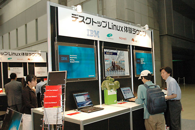 デスクトップLinux体験ラウンジでは、Red HatやSUSEなどのLinuxの実機が展示してあり、自由に触れるようになっていた。また、OpenOffice.orgがインストールされたマシンなどもあり、デスクトップ環境でのLinuxを体験することができた。