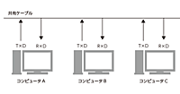 前回までは、2台のコンピュータの間で、シリアル通信でデータを送るという話をしました。しかし2台の機器が通信できるだけでは、ネットワークとは言えません。今回から、ネットワークの要件である多数の機器、つまり3台以上の機器で相互に通信することを考えてみます。接続の形態2台の機器を接続するだけなら、1本のケ