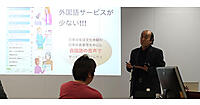 今回は、前回の宿検索と同じように、APIを利用して病院を検索するプログラムです。それほど重篤な症状ではないけれど、急いで病院に行きたい、といった場合などに、GPS搭載型のタブレットPCなどを使って素早く検索することができます。起動すると自分の現在いる位置(赤い●)と、1Km範囲内にある病院が、最大
