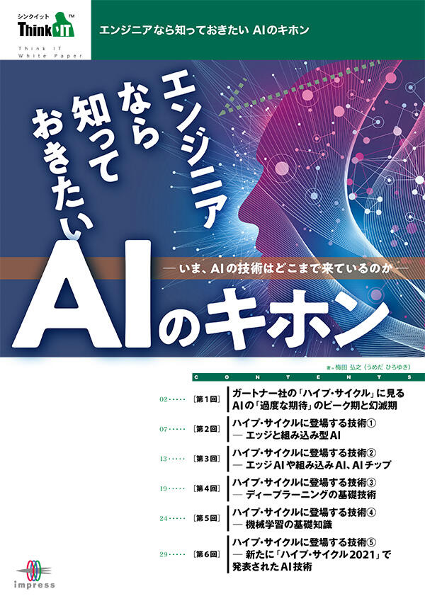 エンジニアなら知っておきたいAIのキホン_【PDFダウンロード】 シェアポストはてブnoteで書く エンジニアなら知っておきたいAIのキホン ー今AIの技術はどこまで来ているかー 本冊子<Think IT 特別編集号 エンジニアなら知っておきたいAIのキホン>はAIの実情を2010年代中期からの中長期的な視点で24ページにわたり解説。大学や企業の研究室レベルで提供されていたAIがどう社会へ出ていったのか、ハイプ・サイクルに記載された要素技術にも多数言及しています。 この記事をシェアしてくださいFacebookX(エックス)はてなブックマークnoteLINE