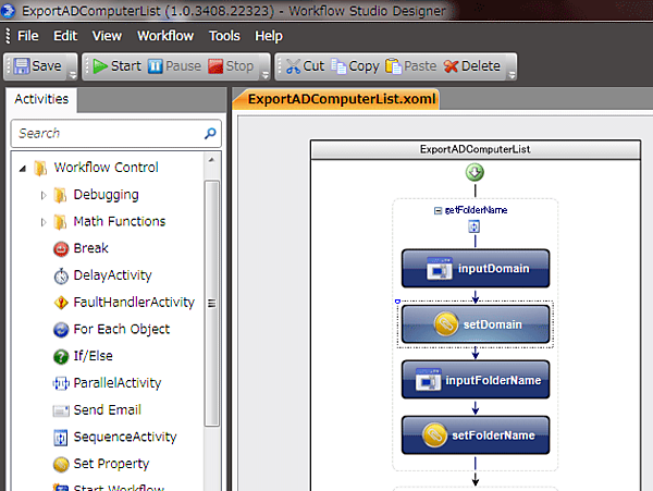 Workflow Studioを使うと、複雑なプログラムを書くことなく、部品を組み合わせるように、ドラッグ&ドロップで、運用手順を設定できます。システム管理者が日常実施するメンテナンス作業を自動化することも可能です。