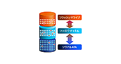 第1回で解説した重複除外は、ストレージ・データ量を削減する技術である。第2回で解説したストレージ自動階層化は、高速なSSDと低額・大容量なSATAディスクを組み合わせ、リソース割り当てを自動化する技術。第3回で解説した技術は、サーバー仮想化ソフトからストレージを管理できるようにするものである。