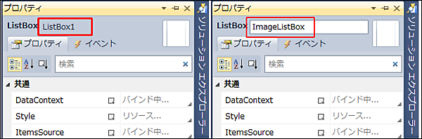 レイアウトしたコントロールには、コントロール名と連番を連結した名前が付けられます。その値は自動的に、XAMLコード中の各要素のName属性値として設定されます。これらの名前は、[プロパティ]の名前上にマウスカーソルを乗せて入力することにより、変更することができます。ここでは一例として「ListBox」を「ImageListBox」に変更して、以降の作業を進めていきます。(図11)。