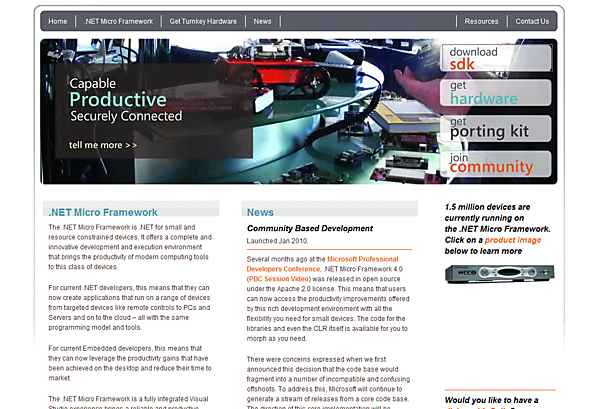 | .NET Micro frameworkのサイト(クリックで拡大) |
