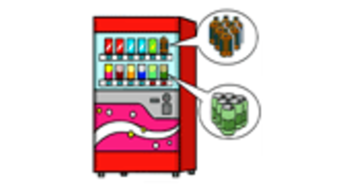 飲料水の自動販売機を想像してみてください。ディスプレイされている飲料水の見本が、商品スペックです。自動販売機の中に保管されている飲料水の実体が、在庫商品です(図1)。