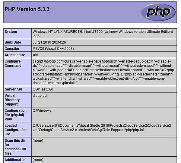 PHP on Windows Azure ガイドライン(アクセス:2010/11)