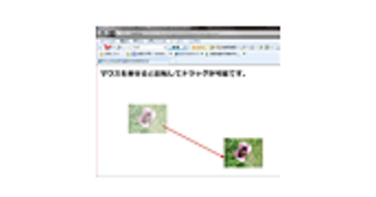 画面上には1枚の画像が表示されています。画像上にマウスカーソルを乗せると、画像が少し透明化し、Y軸を中心に回転を始めます。この状態からドラッグすると画像の移動が可能になります。画像上からマウスカーソルが離れると、画像の透明化は解除され、回転もストップします(図1)。