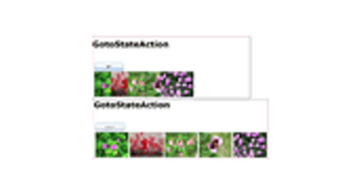 | 図4: 2個のButtonを1つに、5枚のImageを1つに重ねた |