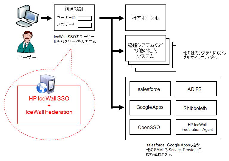 この記事によりSAMLの具体的な動作は理解していただけたと思います。とはいえ、詳細を理解するにはSAMLの仕様書を読む必要があります。そこで、筆者の所属する日本HPでは、salesforceやGoogle Appsなど、それぞれのサービスとの認証連携に特化したアプリケーションとして、HP IceWallを開発しました。これにより、SAMLを意識せずに社内(学内)システムから認証連携ができます。ご興味にある方はこちらをご覧いただければと思います。