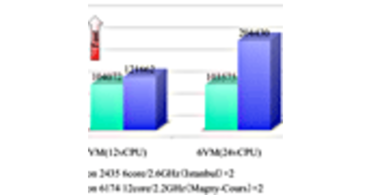 この例では、同時に実行する仮想マシンの数を増やすことで、システム全体での処理能力が向上している。ただし、1VMと3VMでの性能を比較すると、必ずしも3倍の性能が出ているわけではない点にも注目したい。