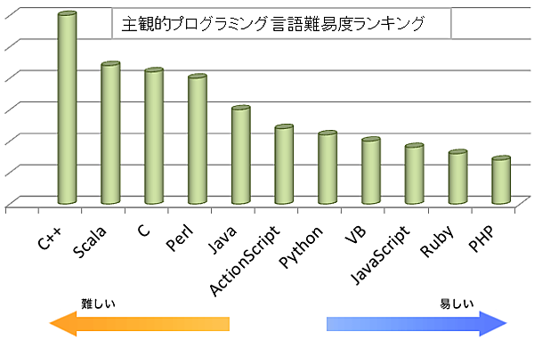 | 図1:筆者主観によるプログラミング言語学習難易度ランキング |