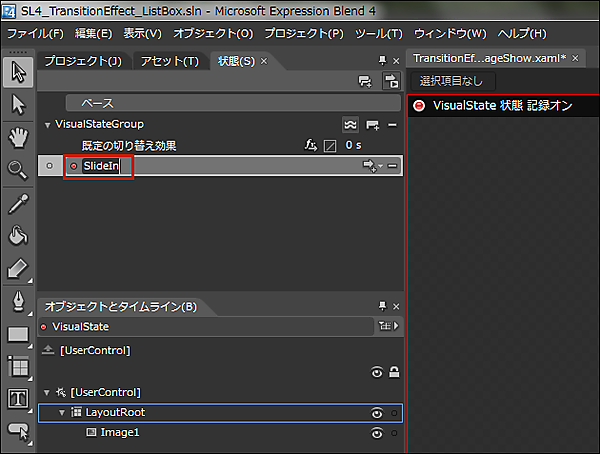 Silverlightユーザーコントロール(TransitionEffectImageShow.xaml)の作成