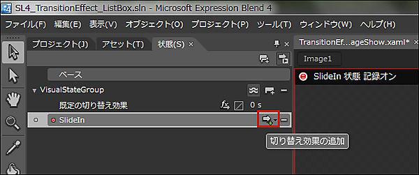 TransitionEffectの設定は以上で終わりです。Blend4を終了しVS2010に戻ります。