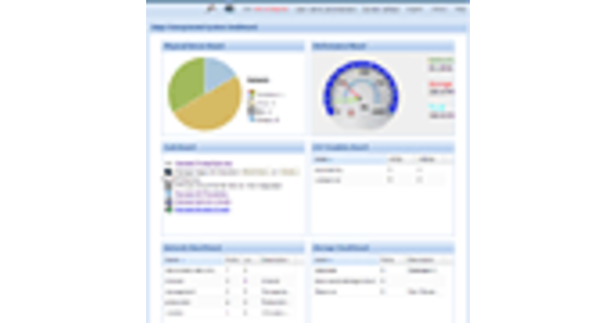 ツールにログインすると、メインの「Dashboard」画面となり、サーバー、OS、トラフィック等の一般情報が表示されます。左端のナビゲーションバーからは、サーバー・ネットワーク・ストレージ接続関連の設定に加え、性能監視・VMWare ツールとの連携、ユーザー別セキュリティ管理等の機能を選択できます。