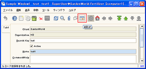 というSQLを実行すると、AD_Window_IDカラムの値が1000000であることが確認できます(1000000という値は環境によって変わる可能性があります)。