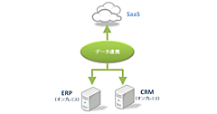 - クラウド(クラウド型CRMサービス)とオンプレミスアプリケーション(ERP)の連携