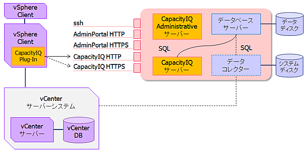 次に、CapacityIQを構成するソフトウェアコンポーネントについて説明しておきましょう。