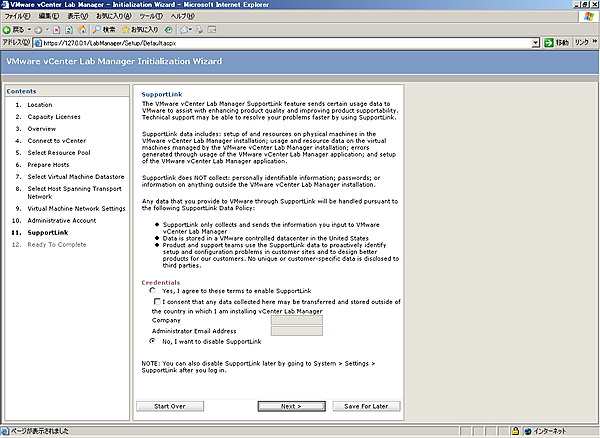 [1-11][SupportLink]画面では、[No, I want to disable Support Link]を選択し、[Next]をクリックします。