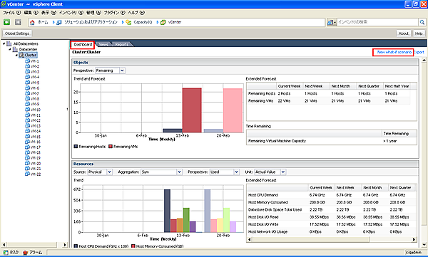 [1-1]インベントリからシナリオを作成するクラスタを選択し、[Dashboard]の右上にある[New what-if scenario]をクリックします