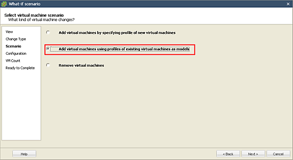 | 図1-4:[What-if scenario]ウィザードの「virtual machine scenario」から選択(クリックで拡大) |